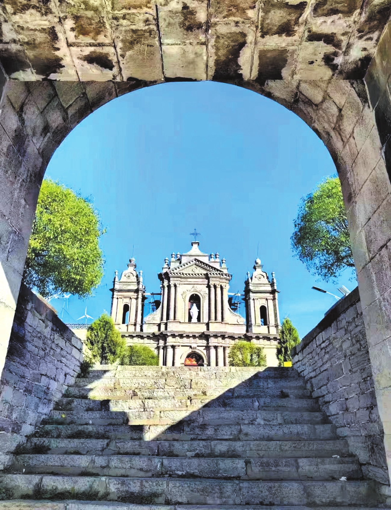 板寺山圣母堂的命運與中國近代歷史緊密相連。20世紀六七十年代,圣母堂所有建筑均遭拆毀,異國風情的城堡式建筑群一度消失于山嶺間。直到1986年,隨著國家宗教政策的落實,太原天主教愛國會才重新修建了圣母堂。重建工程不僅恢復了圣母堂主體建筑,還在山路上修建了十四處苦路碑樓。這些白色哥特式建筑沿著朝圣之路依次排列,構成了一幅新的景觀。