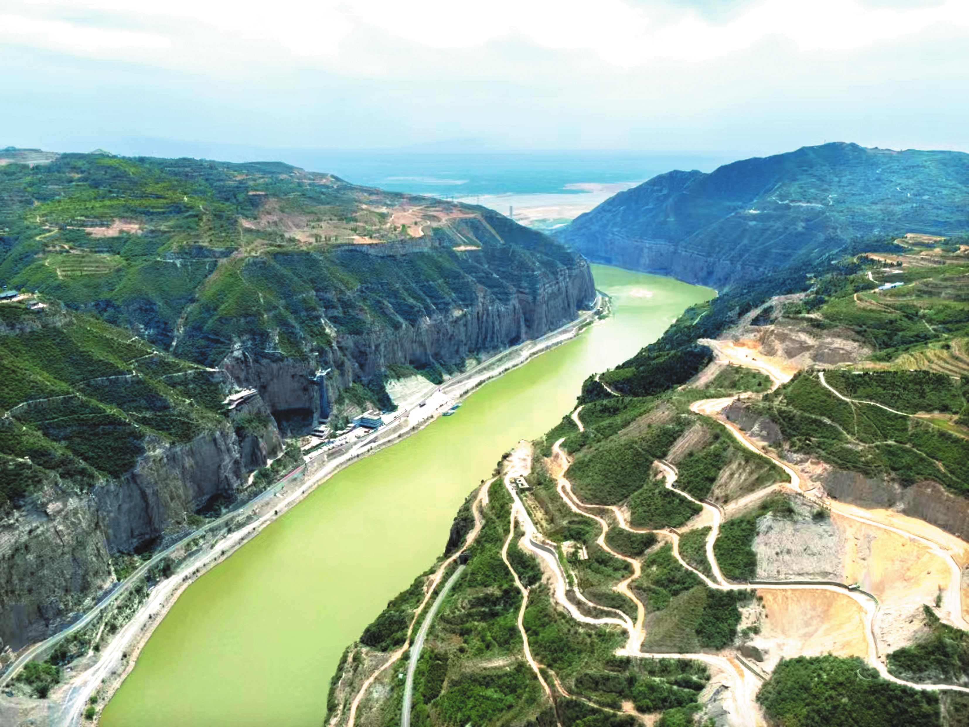 晉蒙黃河大橋 張存良攝 晉陜峽谷段碧水如藍(lán),出龍門后,河道驟然開闊,鋪滿泥沙,下游河水變黃沒有?我發(fā)微信問永濟(jì)的朋友,他發(fā)來風(fēng)陵渡的視頻和照片,黃河也是綠的。風(fēng)陵渡以下有三門峽和小浪底兩座大壩,黃河只能更清更綠。由此可知,整個黃河上中游,幾千里皆綠水如藍(lán),實乃千萬年未有之大景觀。 黃河變清變綠,有諸多原因。首先是黃土高原持續(xù)幾十年的水土保持工作大見成效,大量坡地整修為平地,退耕還林,種草種樹,植被增加,生態(tài)改善,很多地方做到了“土不下山,水不出溝”。據(jù)黃委會測算,近二十年來,黃河中游輸沙量減少了80%左右。攔截泥沙的同時,水流自然也要被攔截一部分,故水量也有所減少。有資料顯示,2000年以后,黃河年均徑流量較20世紀(jì)減少了40%。2025年春天,黃河流域降水偏少近三成,眾多支流輸水乏力,黃河流量小,帶不動泥沙,故河清三千里。 河清的另一個原因,是一系列大壩沉淀了泥沙,同時調(diào)控流量,河水不再大漲大落,長時間平穩(wěn)下行,泥沙不再翻卷。流量調(diào)控能保證下游不斷流,能讓沿途各引黃工程有水可用,將黃河水用到最需要之處,功莫大焉。 控制水土流失,讓黃河變清,這是多少代人夢寐以求之事,幾十年奮斗,而今終成現(xiàn)實。唯一憂慮的是黃河水量減少,會有不利之處,一切還有待科學(xué)論證,有待實踐檢驗。 長路漫漫,滄海桑田,且讓我們記下這一刻,2025年春夏之交,三千里黃河綠如藍(lán)。(高定存) |