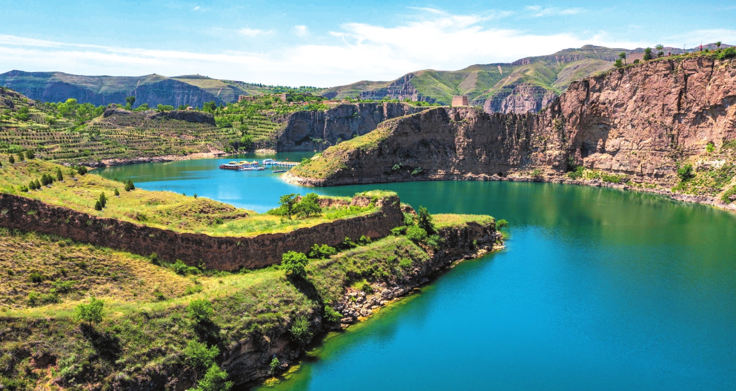 老牛灣 盧鵬宇攝 從磧口繼續(xù)下行,走過石樓灣、乾坤灣,黃河依舊清澈不染。站在山上看下去,深深峽谷里,黃河宛若一條綠色緞帶,溫柔盤旋于峽谷中。歷史上,黃河奔騰咆哮,穿高原,裂峽谷,卷泥走石,何其壯也!而今變?yōu)橐缓忧辶鳎袢缤粋€小姑娘,這情景,讓人感覺有幾分夢幻。 先前我曾到過壺口兩次,一次在春季,一次在秋季。春季水少,秋季水多,但兩次所見都是黃色瀑布。這一次來,壺口的黃河也已變綠,那激蕩萬年聞名世界的黃色瀑布,已然變換了顏色,雪浪堆疊,珠飛玉濺是另一番景致。太陽落山時,站在黃河大橋上往下看,窄窄的龍漕里只有半漕水在緩緩流動,兩面裸露著堅硬而又干凈的巖石河床。河水受擠壓的同時,綠色也被濃縮,看上去比保德的還要綠,還要濃,濃得化不開。 從壺口到禹門口,沿途有不少觀景臺,下臨深谷,白浪翻卷,水聲響亮。黃河泛黃時候,觀景臺上只聞水聲轟鳴,看不出浪花。此時黃河清,白浪顯,成了新景。抵達(dá)禹門口,黃河也是綠的,游艇在河里開過,水面上劃出道道波紋,宛如鋪展著的巨幅油畫。