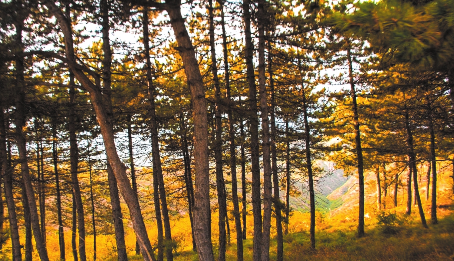 這片次生林的樹(shù)種分為喬木與灌木兩類:?jiǎn)棠疽詡?cè)柏、杜松、檜柏、山楊、白樺、柞樹(shù)、山桃、山杏為主;灌木則有沙棘、美薔薇、黃刺玫、檸條、荊條等。1964年的統(tǒng)計(jì)數(shù)據(jù)顯示,其面積僅377.3公頃,其中側(cè)柏林218.7公頃——稀疏的林木孱弱不堪,仿佛隨時(shí)會(huì)被風(fēng)雨吞噬。