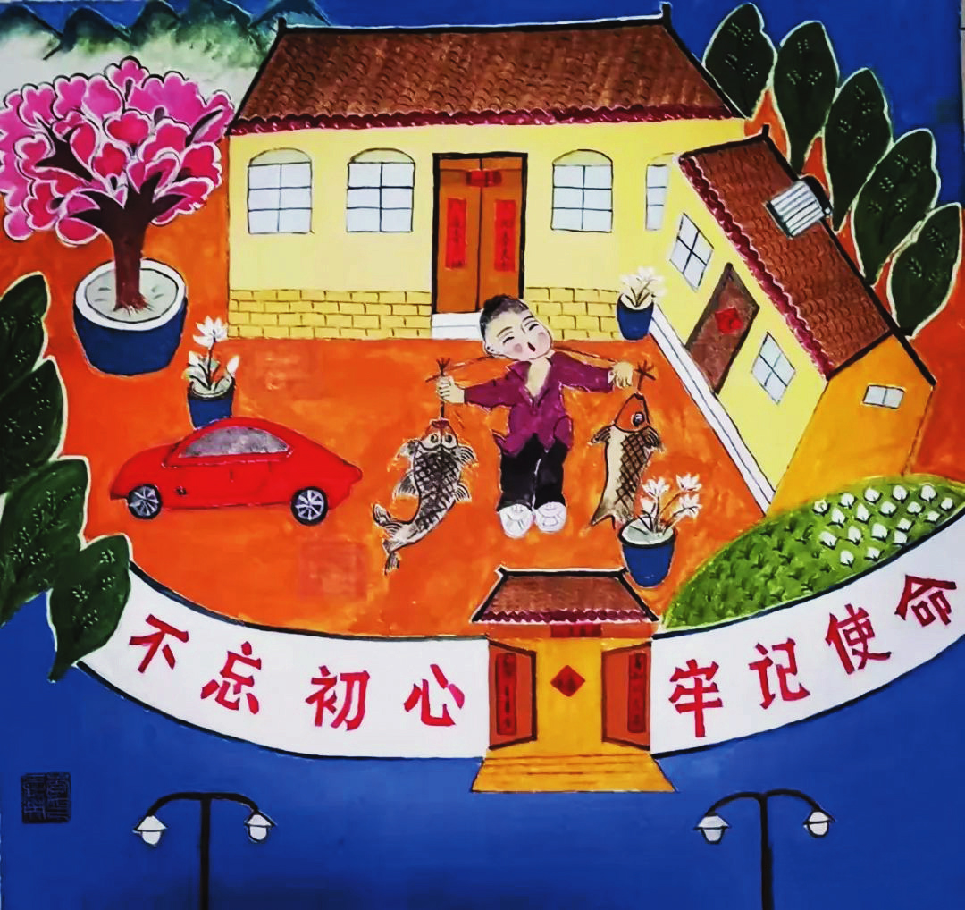 她們的作品,取材于農(nóng)村、農(nóng)業(yè)、農(nóng)民生活,或表現(xiàn)美好的生活場(chǎng)景,或反映豐收的喜悅,或體現(xiàn)鄉(xiāng)愁,在表現(xiàn)手法上采用大膽的夸張、變形,巧用艷麗的色彩,人物刻畫細(xì)致入微,內(nèi)心喜悅躍然紙上,富有鮮明的地方特色。綜觀她們的作品,無不展現(xiàn)了社會(huì)主義新農(nóng)村在新時(shí)代的新變化、新風(fēng)貌,在傳承和弘揚(yáng)代縣文化、引領(lǐng)社會(huì)主義精神文明建設(shè)方面做出了出色的嘗試與實(shí)踐。