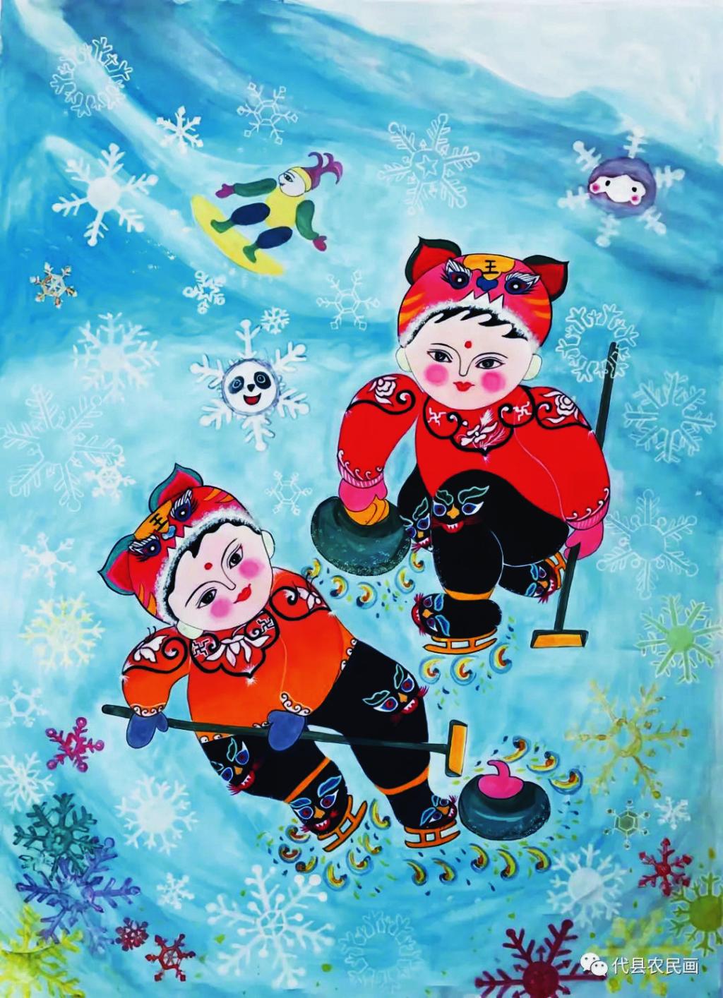 千淘萬漉雖辛苦,吹盡狂沙始到金。這些農(nóng)民畫促進(jìn)會(huì)的女畫家為了創(chuàng)作吃盡了苦,費(fèi)盡了心,但也在追求藝術(shù)的路上收獲了許多。丁全愛創(chuàng)作的《寒燕兒》《甜》入展山西省群眾文化惠民工程“美麗鄉(xiāng)村”現(xiàn)代農(nóng)民畫優(yōu)秀作品展,《吉祥五寶》《跤娃》《春拂滹沱》入選山西省脫貧攻堅(jiān)農(nóng)民畫展;戴翠平的《撓閣上來了》被山西省農(nóng)民畫研究會(huì)收藏,2020年疫情期間創(chuàng)作的《逆行者》《眾志成城抗疫情》《全球同心抗疫情》均被代縣檔案館收藏;賈永花的《春意盎然》入展山西省群眾文化惠民工程“新農(nóng)村、新氣象”省農(nóng)民畫優(yōu)秀作品展,《農(nóng)家樂》被山西省文化館收藏;祁磊創(chuàng)作的《盛世鼓舞》被評(píng)為山西省群眾文化惠民工程“新農(nóng)村、新氣象”省農(nóng)民畫最佳作品;在中國(guó)農(nóng)民畫研究會(huì)2022年“虎虎生威慶冬奧”專題云展活動(dòng)中,丁全愛、王粉玲、戴翠平、孫瑰峰、戴永蓮、柳尚艷六位畫家的作品被選中入展……她們的作品先后在《山西日?qǐng)?bào)》《忻州日?qǐng)?bào)》專欄刊登,逐漸被省內(nèi)外的行家和廣大農(nóng)民畫愛好者所認(rèn)可,釋放出濃烈的彩墨馨香。(劉 睿)