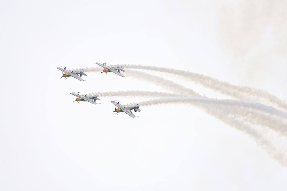 2023年9月28日,特技飛行表演隊(duì)在2023太原國(guó)際通用航空博覽會(huì)上表演。新華社記者楊晨光 攝