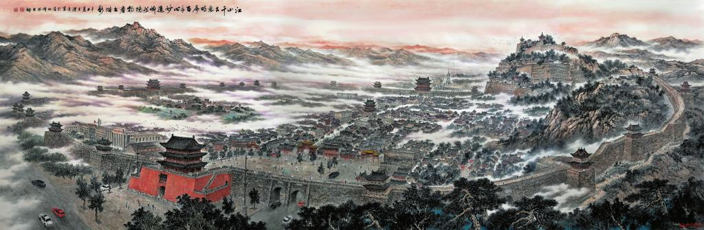 在堅持不懈的學習和創(chuàng)作過程中,殷渭凌逐漸意識到,書畫藝術有其自身規(guī)律,并不存在固定模式,對于一個書畫家來說,確定個人藝術走向非常重要,想要表現(xiàn)的主題、內(nèi)容、情感最終會決定創(chuàng)作本身的價值。也正是清楚了這一點,殷渭凌將自己的創(chuàng)作素材鎖定在熟悉和熱愛的故土上。他從家鄉(xiāng)的自然造化中選取創(chuàng)作對象,提煉感情和思想,然后加以調(diào)整、升華,最終呈現(xiàn)給觀者,讓大家看到了獨具韻味的黃河、太行、長城、古鎮(zhèn)、雄關、窯洞、高原、古剎、佛塔等。