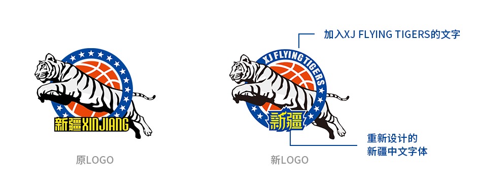 遼寧(飛豹)、吉林(東北虎)、新疆(飛虎)、廣廈(猛獅)、福建(鱘魚)5支球隊優(yōu)化升級俱樂部標識圖解如下: