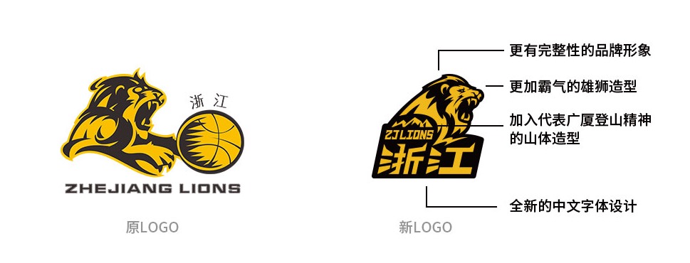 而新疆、福建、廣廈的新標識,CBA聯(lián)盟尊重了俱樂部的意見,在原有標識上進行了微調(diào)設計。新疆隊新標識融入了富有地域特色的天山元素,漢字和英文設計也更具歸屬感;福建隊新Logo則是將原有的鱘魚“瘦身”,并點綴了鱘魚的眼部設計,讓整體畫風更加靈動、勇猛;廣廈隊新標識增強了整體性,另外還在雄獅鬃毛的勾勒中融入了山體元素,與廣廈的“登山精神”完美呼應。