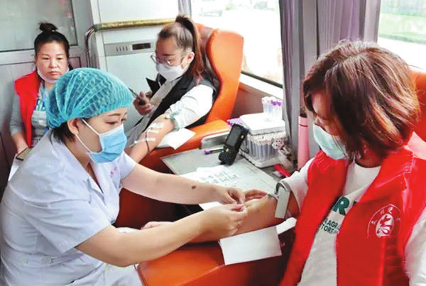 9月4日,小雨。河曲縣青年志愿者協(xié)會(huì)的志愿者們一早就來(lái)到獻(xiàn)血車前,在工作人員的指導(dǎo)下,按流程填寫(xiě)資料、測(cè)量血壓、采血,有序等候獻(xiàn)血。在獻(xiàn)血隊(duì)伍中,有多次獻(xiàn)血的“老將”,也有初次上陣的“新兵”,鮮血隨著愛(ài)心流淌。當(dāng)天,23名青年志愿者獻(xiàn)血總量達(dá)8800毫升。(劉宇婷 攝)
