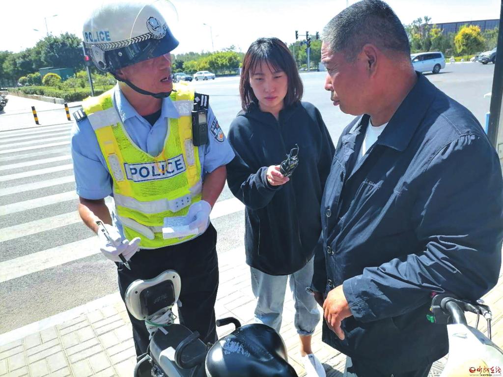 行人騎行電動車闖紅燈接受教育。 張志遠(yuǎn) 攝