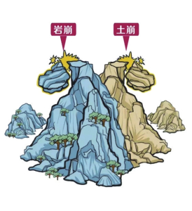2.遭遇高速滑坡時,如滑坡呈整體滑動時,迅速抱住身邊的樹木等固體物體,也可以躲避在結(jié)實(shí)的障礙物下。不能將避災(zāi)場地選擇在滑坡的上坡或下坡。