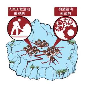 地裂縫的成因有兩大類,第一種是內(nèi)動力,由構(gòu)造運(yùn)動形成的,比如地震等自然因素;另一種是外動力,由人類工程活動形成的,比如松散土體潛蝕、膨脹土脹縮等形成地裂縫。還有一種是人類過量抽汲承壓水導(dǎo)致的地裂縫。
