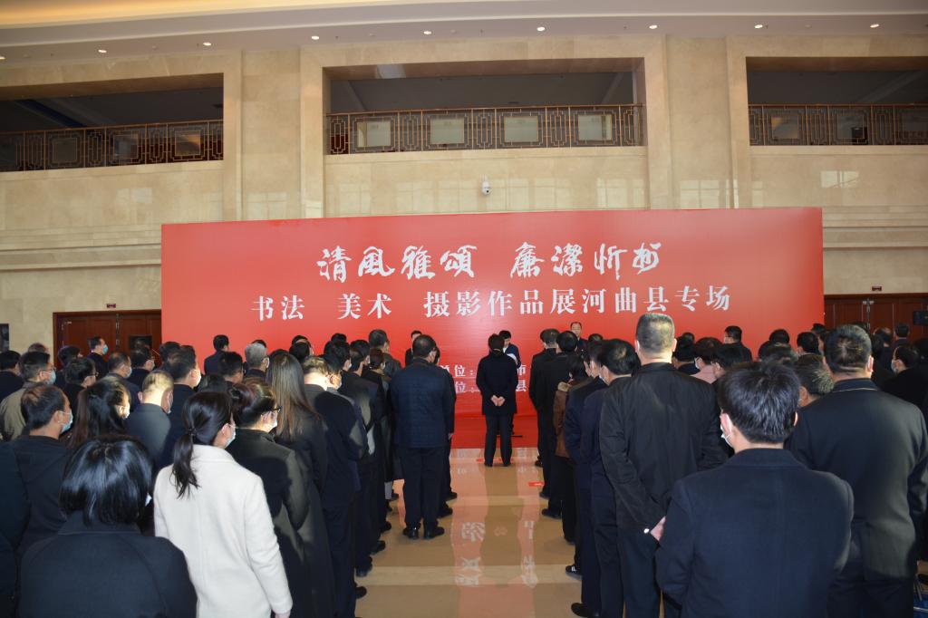 翰墨丹青揚(yáng)正氣,清風(fēng)廉韻沁民心。11月10日,由忻州市紀(jì)委監(jiān)委主辦,河曲縣紀(jì)委監(jiān)委承辦的“清風(fēng)雅頌·廉潔忻州”書畫美術(shù)攝影展河曲縣專場(chǎng),在臨隩公園美術(shù)館開展。市政協(xié)副主席、縣委書記邊東圣出席儀式并作重要講話,縣委副書記、縣長(zhǎng)任鴻賓宣布“清風(fēng)雅頌·廉潔忻州”書法美術(shù)攝影展開展,縣委常委、縣紀(jì)委書記、縣監(jiān)委主任張永明主持開展儀式。縣四大班子領(lǐng)導(dǎo)和其他縣處級(jí)領(lǐng)導(dǎo),全縣各鄉(xiāng)鎮(zhèn)、居民辦、黨群、政府、發(fā)改、農(nóng)口、政法、宣傳文衛(wèi)各口黨員干部及全體紀(jì)檢監(jiān)察干部共計(jì)180余人參加了開展儀式。