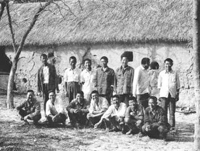 一九八一年,部分“大包干”帶頭人在茅草屋農(nóng)舍前合影(資料照片)。新華社發(fā)