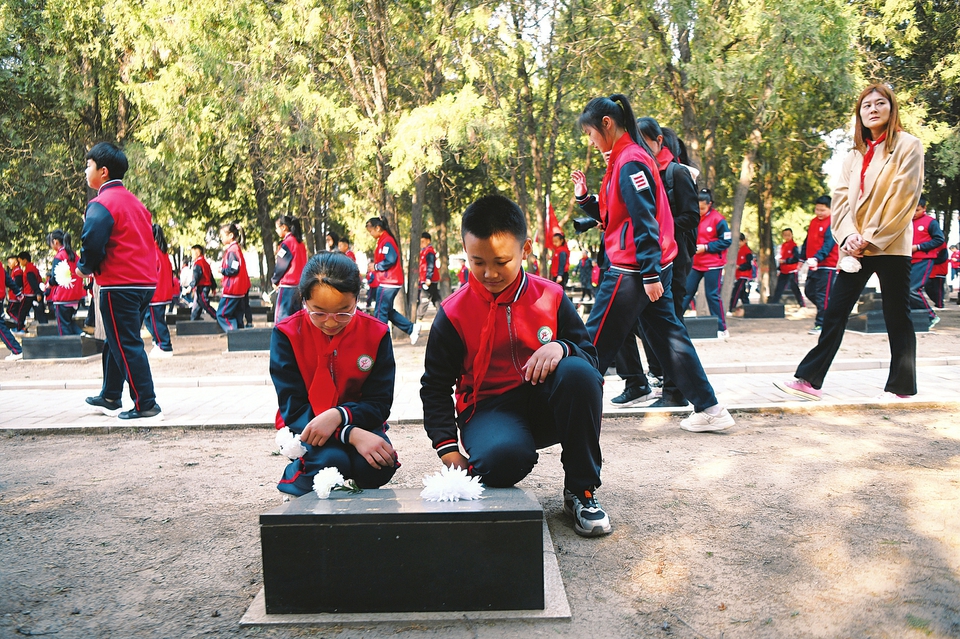 3月30日,省城迎澤區(qū)雙塔南巷小學(xué)組織學(xué)校師生前往太原市雙塔革命烈士陵園開展清明祭掃活動,深切緬懷革命先烈。本報記者王瑞瑞攝