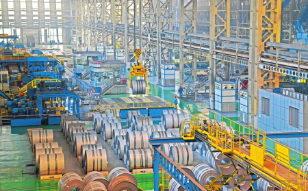 一卷卷鋼材成品排列整齊,3臺(tái)軋機(jī)隆隆作響,操作機(jī)器的人卻難覓蹤影。“現(xiàn)在車間自動(dòng)化的程度非常高,幾乎大部分的工作都由機(jī)器完成。”2號(hào)軋機(jī)前,安全生產(chǎn)部部長(zhǎng)房旭回答著記者的疑問,“你看這臺(tái)軋機(jī),它的啟動(dòng)和暫停其實(shí)并不在這里操作,而是在旁邊的智慧化集中控制中心實(shí)現(xiàn)的。工作人員在操作的同時(shí),那邊的系統(tǒng)還能同步記錄下實(shí)時(shí)的數(shù)據(jù),為后續(xù)的工序優(yōu)化和材料研發(fā)提供支持。”房旭所說(shuō)的智慧化集中控制中心,投用于去年10月,除了“一鍵啟停”,還實(shí)時(shí)記錄著整個(gè)車間的能源消耗和安全生產(chǎn)情況。