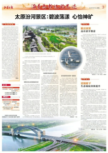 2020年5月,習(xí)近平總書記來(lái)到汾河太原城區(qū)晉陽(yáng)橋段,察看汾河水治理及兩岸生態(tài)保護(hù)等情況,深情囑托“要切實(shí)保護(hù)好、治理好汾河,再現(xiàn)古晉陽(yáng)汾河晚渡的美景,讓一泓清水入黃河?!?021年9月,經(jīng)過(guò)四期改造,汾河太原城區(qū)段生態(tài)修復(fù)治理工程全面完工,43公里的綠色生態(tài)長(zhǎng)廊宛若一條玉帶穿城而過(guò)。