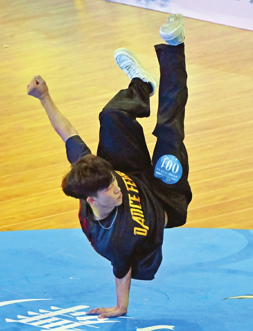 8月17日,省第十六屆運(yùn)動會體育舞蹈(霹靂舞)大賽吸引眾人眼球。本報(bào)記者劉通 本報(bào)通訊員王中勛攝