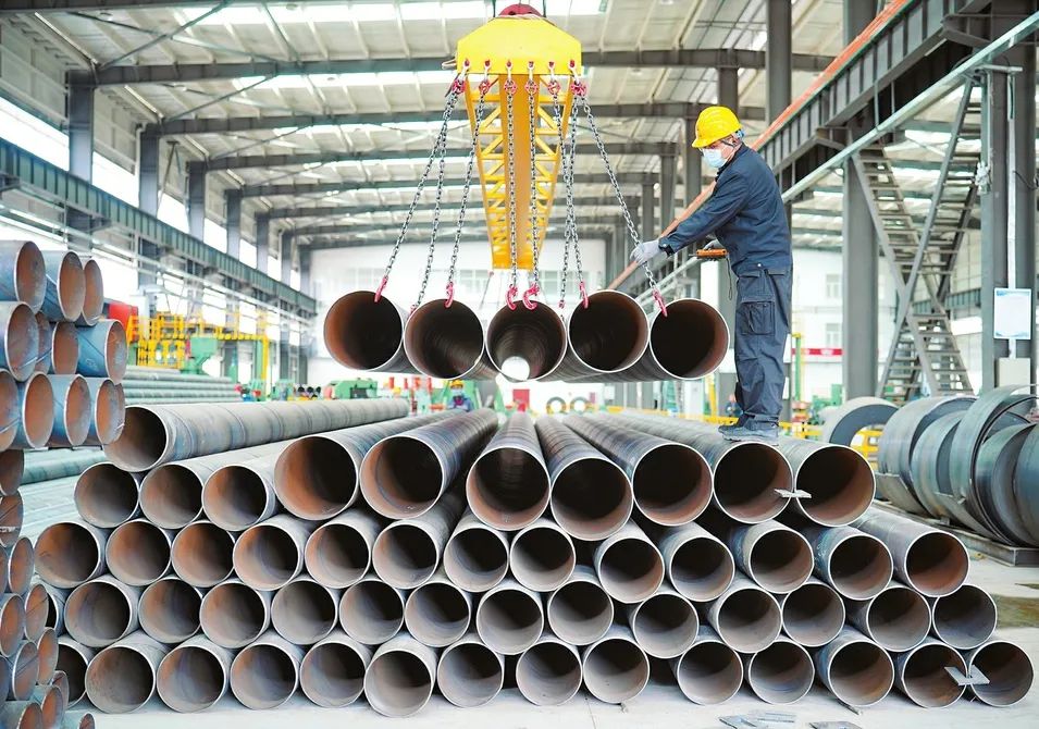 山西萬流金屬制品有限公司工人趕制訂單加工螺旋鋼管