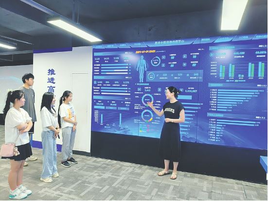 在山西智杰軟件工程有限公司展示大廳,工作人員正在介紹數字化醫(yī)院解決方案。本報記者姚凡攝