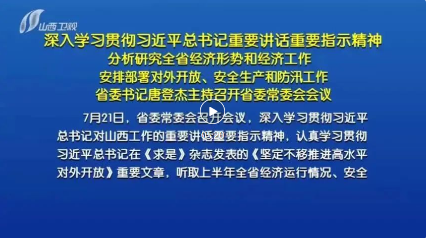 7月21日,省委常委會召開會議,深入學(xué)習(xí)貫徹習(xí)近平總書記對山西工作的重要講話重要指示精神,認真學(xué)習(xí)貫徹習(xí)近平總書記在《求是》雜志發(fā)表的《堅定不移推進高水平對外開放》重要文章,聽取上半年全省經(jīng)濟運行情況、安全生產(chǎn)形勢和防汛工作情況匯報,研究部署下一步工作,審議通過《關(guān)于嚴格落實“四水四定”的實施方案》。省委書記唐登杰主持會議。