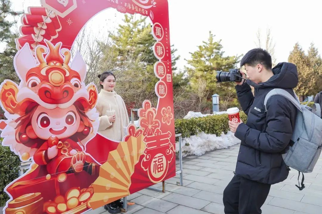 人們在陽泉記憶·1947文化園舉辦的2024新春游園會上打卡拍照