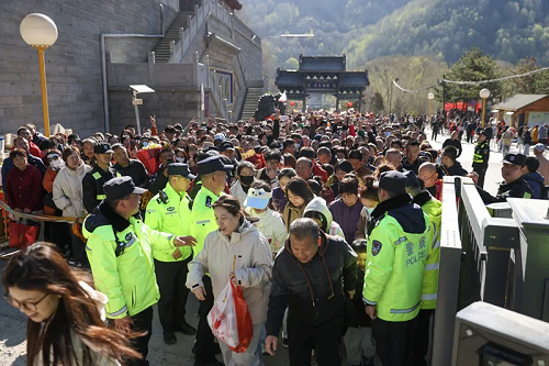 五臺山景區(qū)既有秀美的自然風(fēng)光,又有悠久的佛教文化,景區(qū)的吸引力給安保工作帶來很大壓力。忻州市公安局、五臺山公安分局兩級公安機(jī)關(guān)密切聯(lián)動、精準(zhǔn)分析,在景區(qū)交通要道和核心景區(qū)設(shè)立警務(wù)執(zhí)勤點(diǎn),民警輔警猶如景區(qū)的 “守門人”,不僅能在游客高峰時高效疏導(dǎo)人流,解答游客關(guān)于景區(qū)游覽路線、注意事項(xiàng)等疑問,還能第一時間處理各類糾紛與突發(fā)事件,為游客保駕護(hù)航。