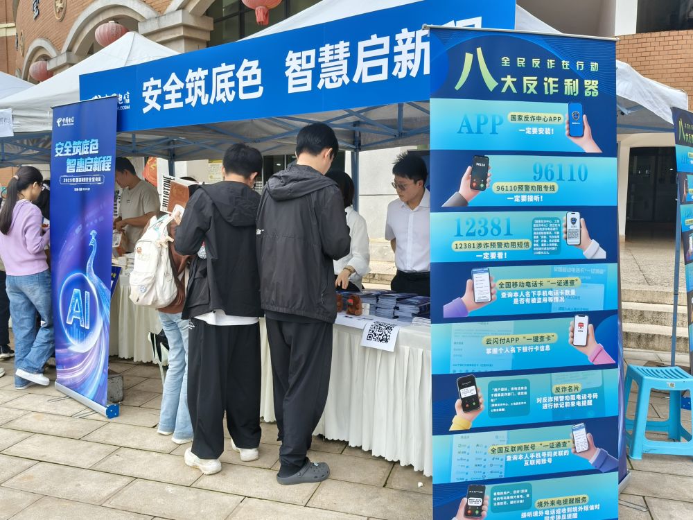 校園的露天廣場上還安排有網(wǎng)絡安全知識趣味問答活動,吸引學生參與,讓他們在輕松愉快的氛圍中鞏固了反詐知識。還有工作人員向路過的學生發(fā)放反詐宣傳手冊。